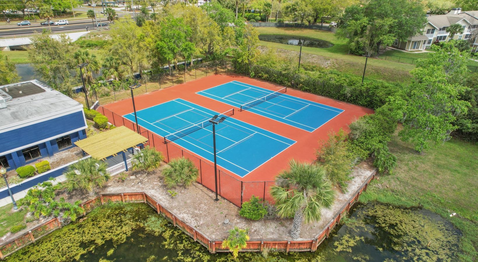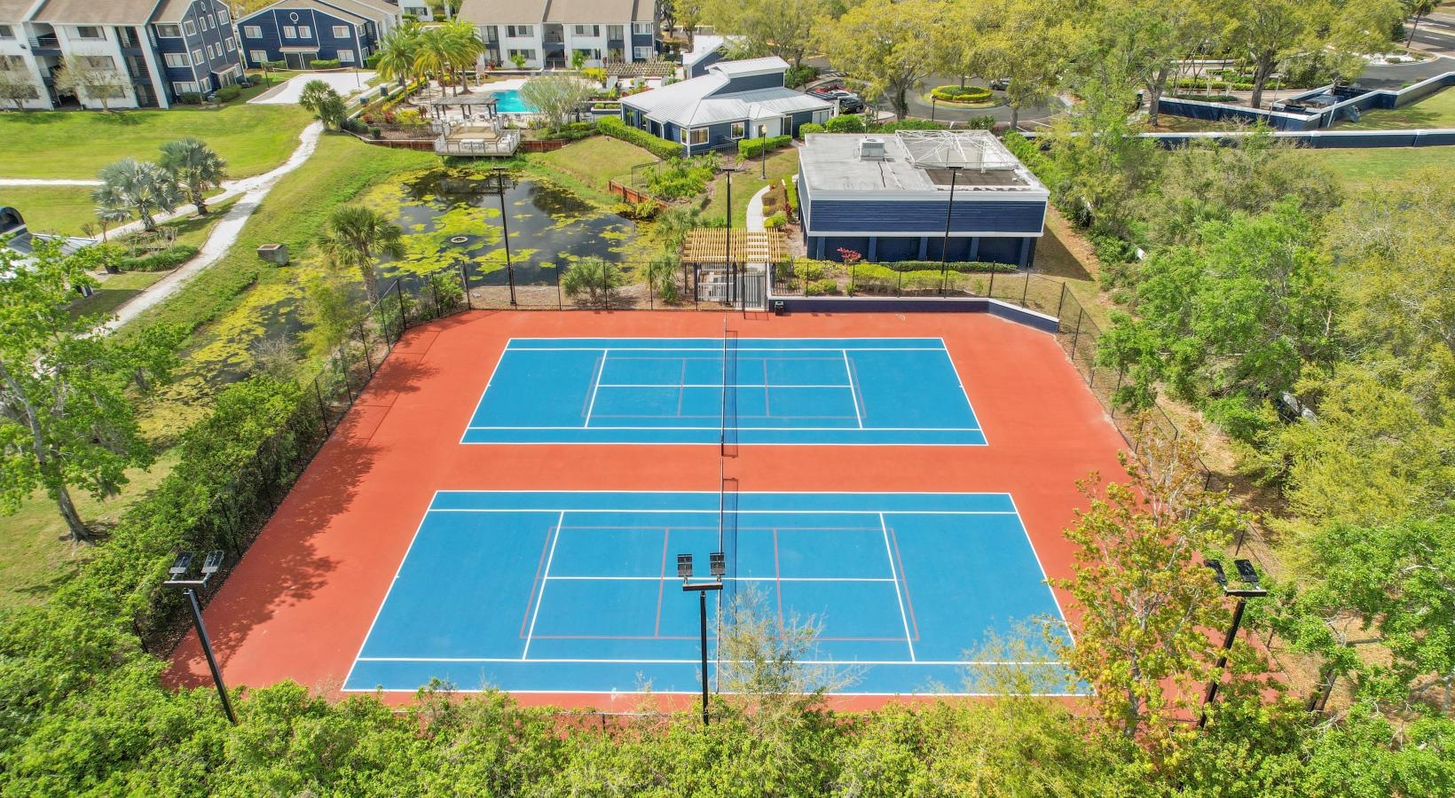 • aerial shot of tennis courts at Alvista Winter Park