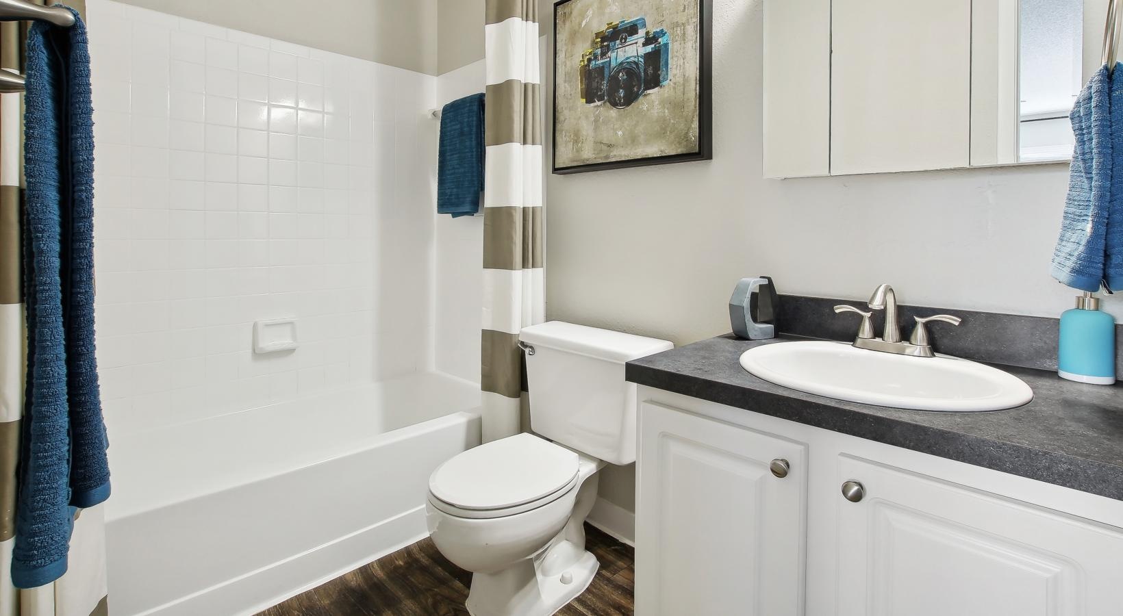 • shower/tub combo in bathroom